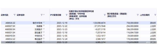 从拟募资规模来看,上述15宗IPO中,粤芯半导体拟募资金额居首,公司本次拟募资金额约75亿元。据了解,粤芯半导体是一家致力于为境内外芯片设计企业提供12英寸晶圆代工服务和特色工艺解决方案的集成电路制造企业,公司创业板IPO于12月19日获得深交所受理。